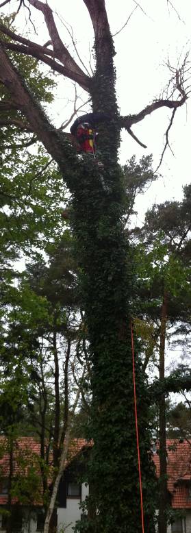 Wir fällen Bäume - aber wir tragen Ihren Baum auch mittels Seil-Baumklettern auf kleinster Grundstücksfläche Stück für Stück ab.